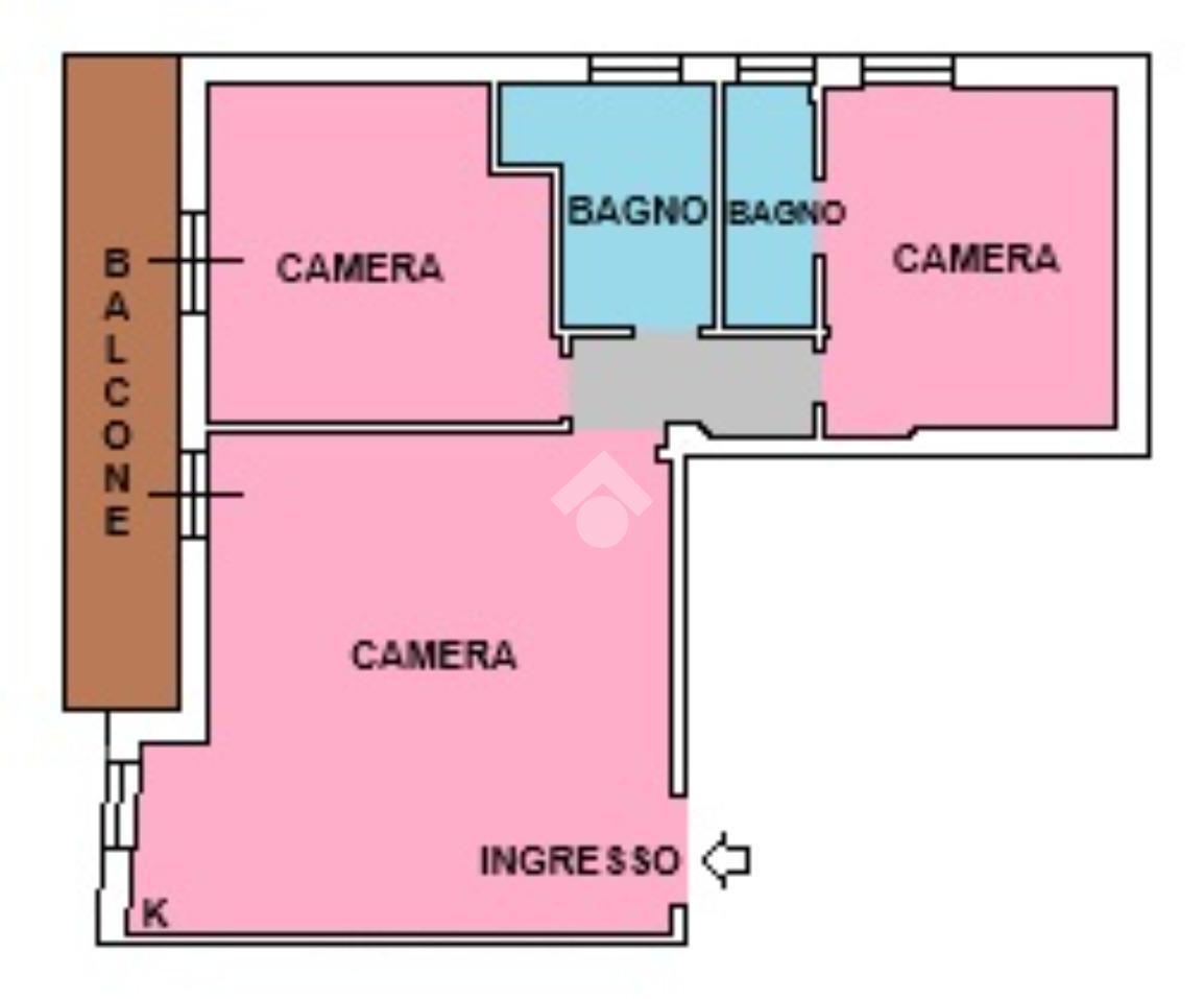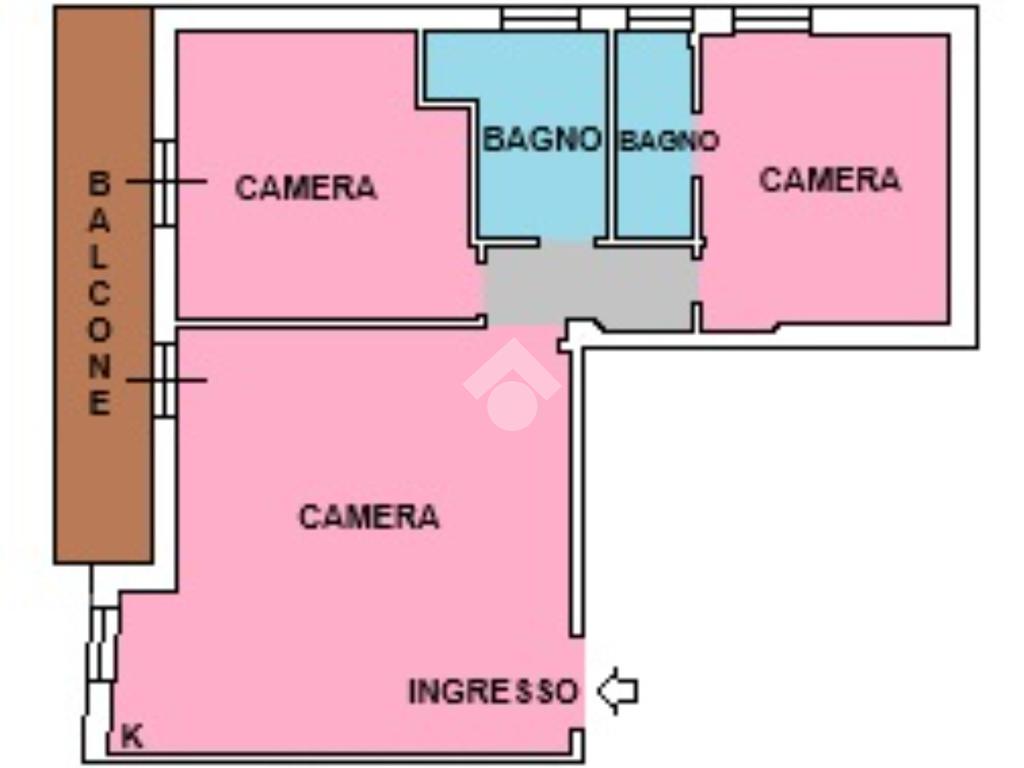 È composto da: ingresso, tre camere (una delle quali con predisposizione per angolo cottura), doppi servizi e balcone.