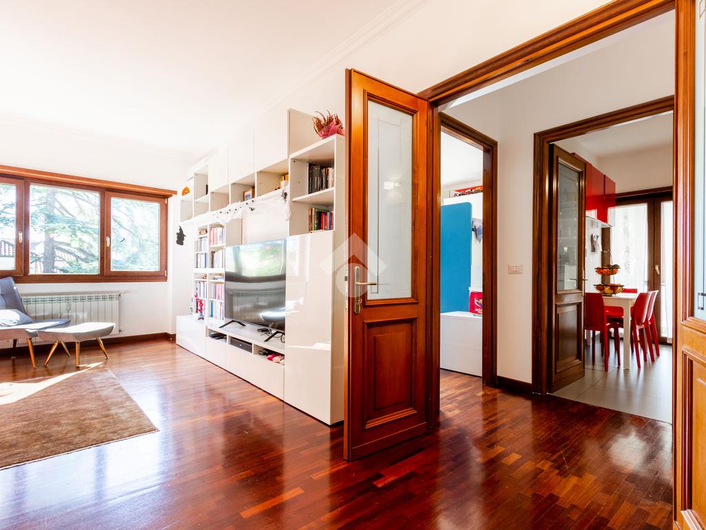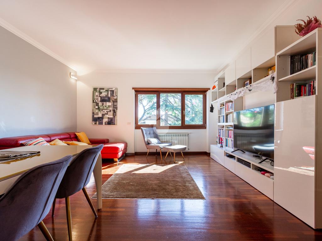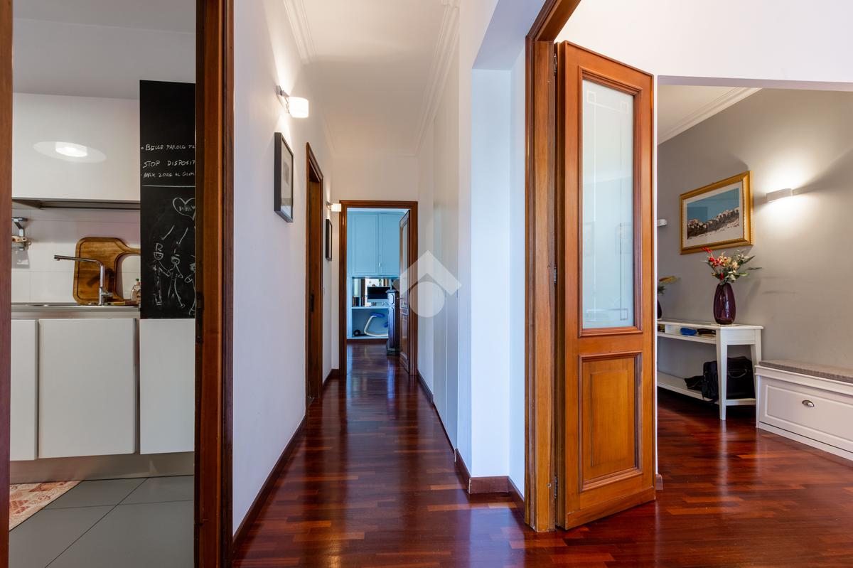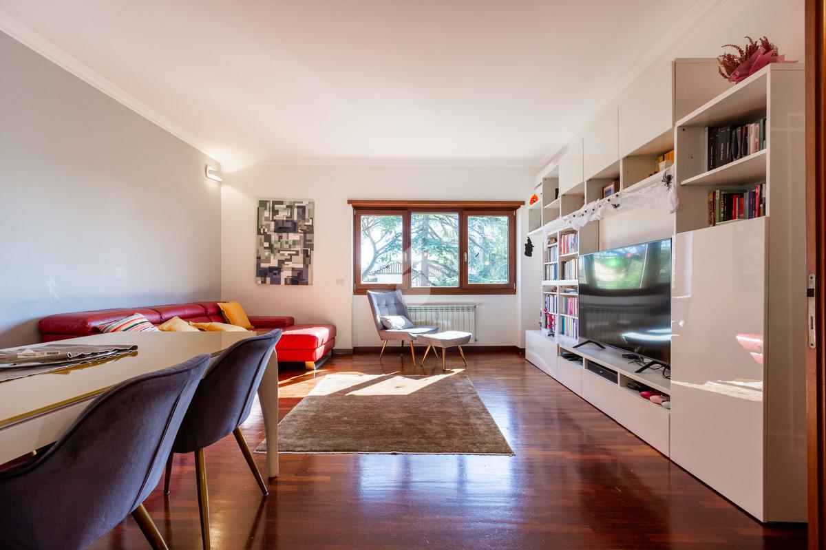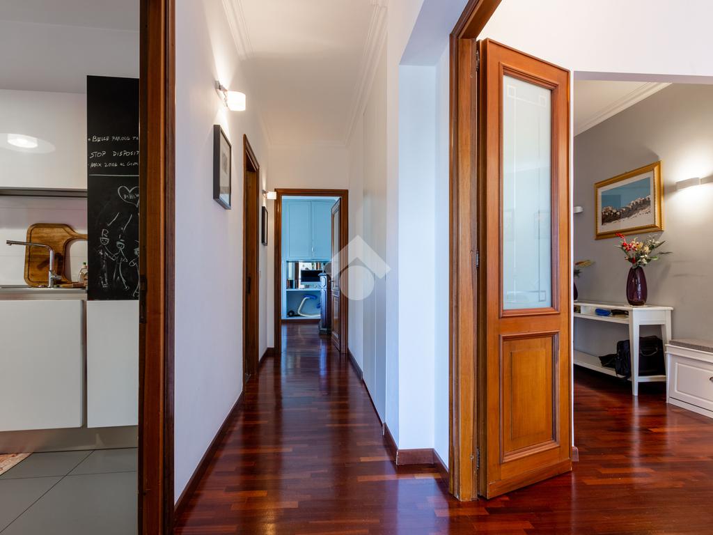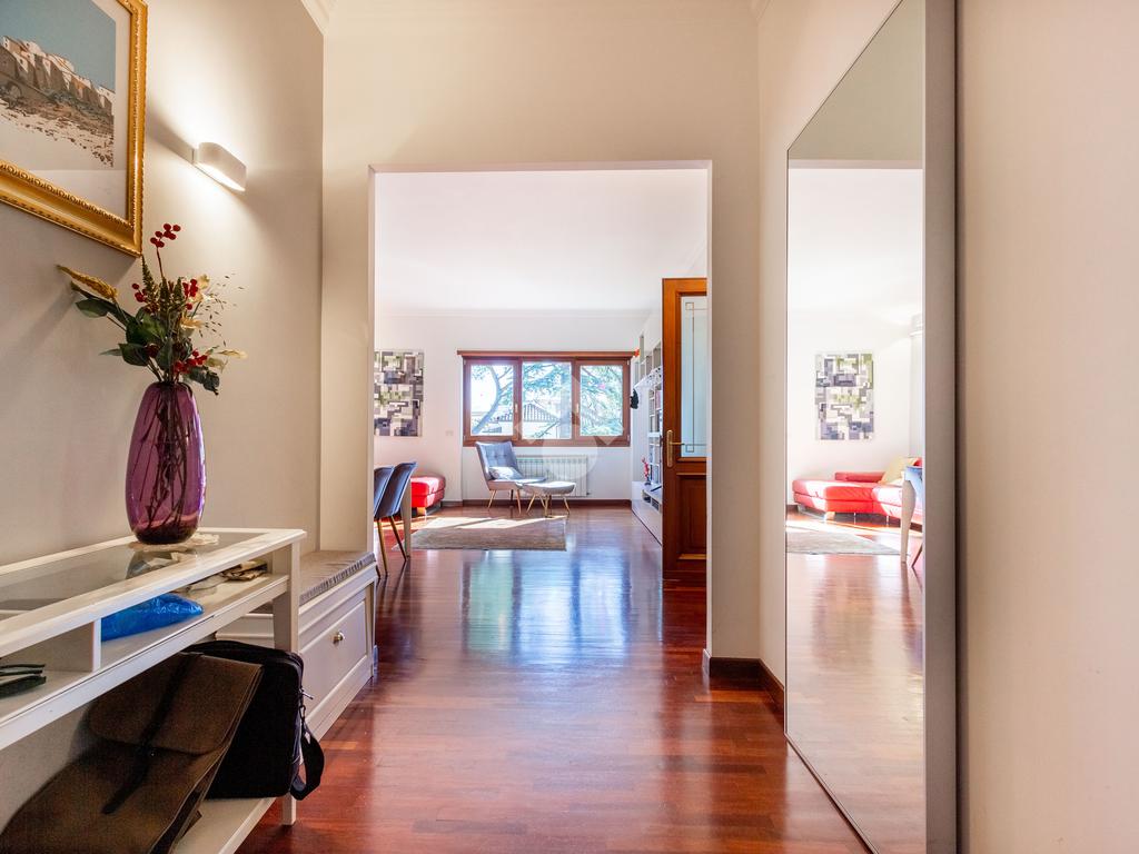 L'appartamento si presenta in ottimo stato interno: pavimenti in parquet (ad eccezione di cucina e servizi) e finiture curate.
