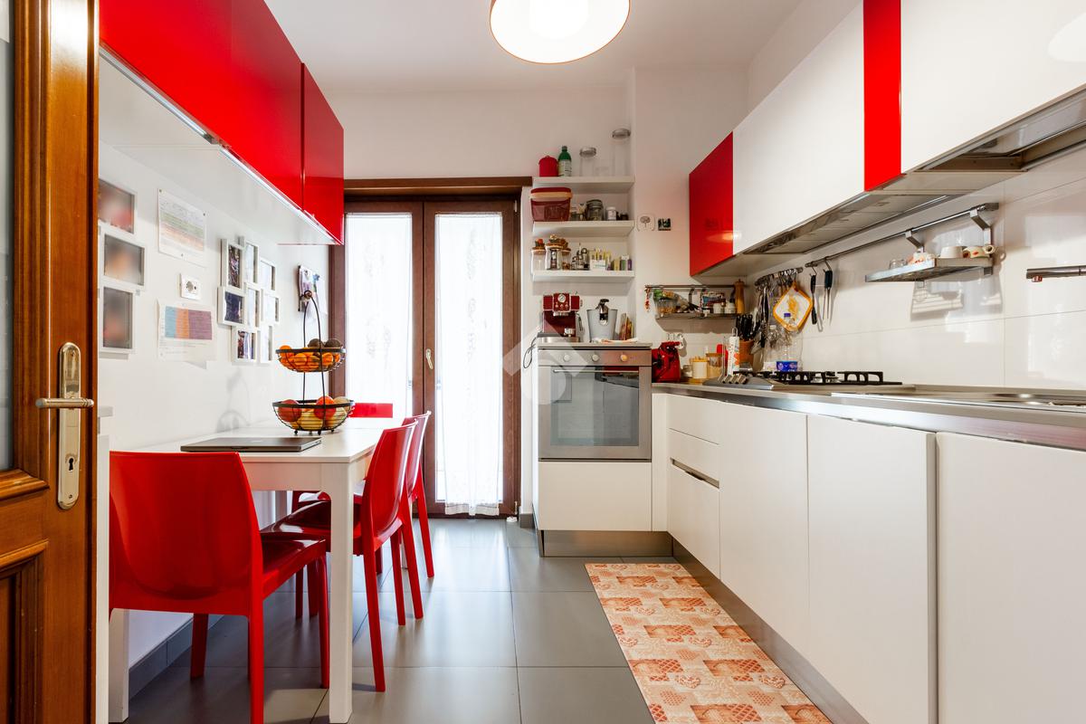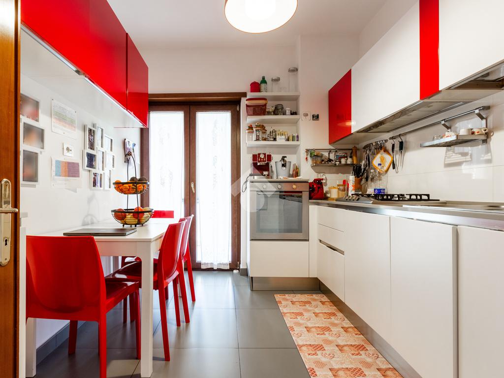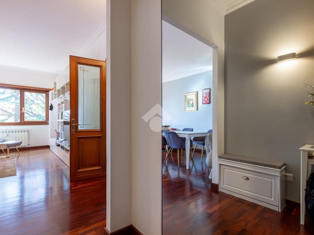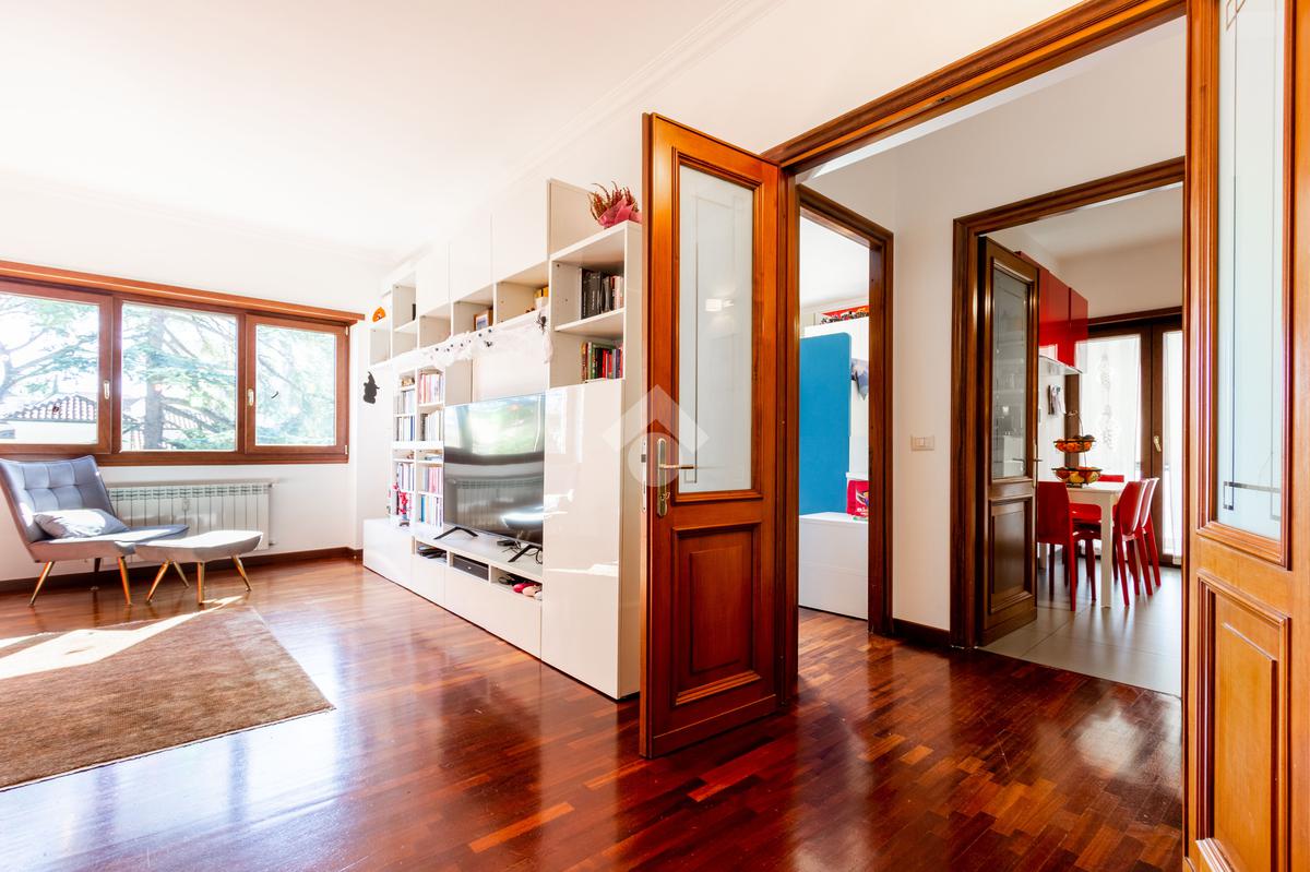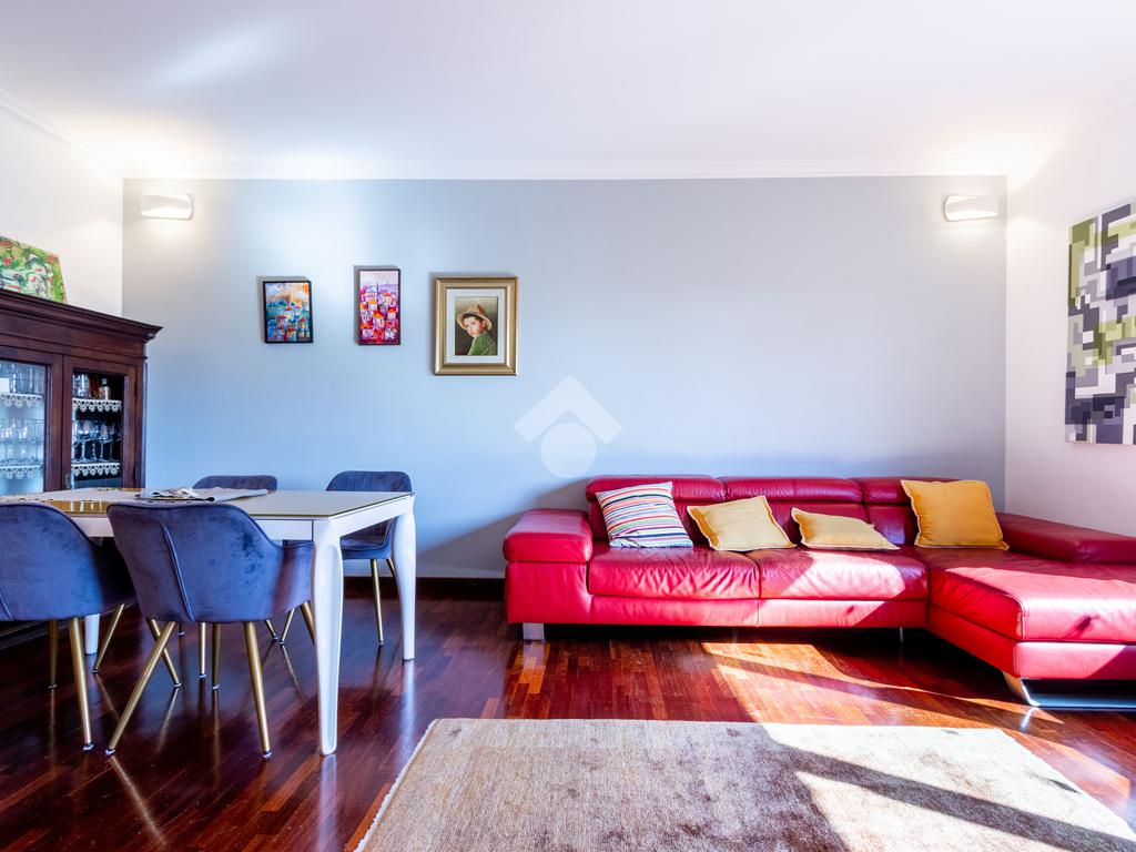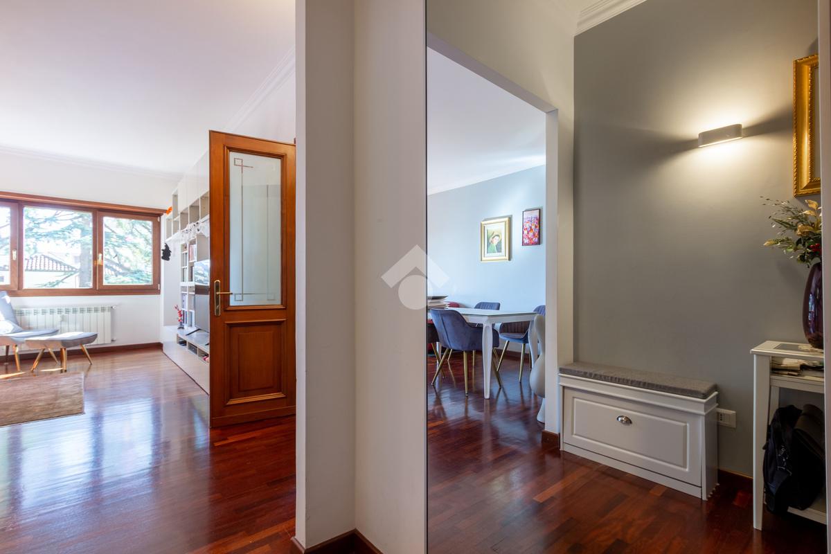 L'appartamento si presenta in ottimo stato interno: pavimenti in parquet (ad eccezione di cucina e servizi) e finiture curate.