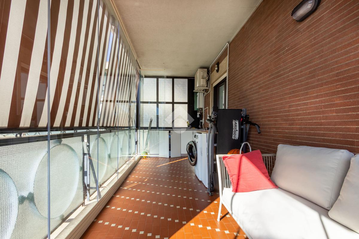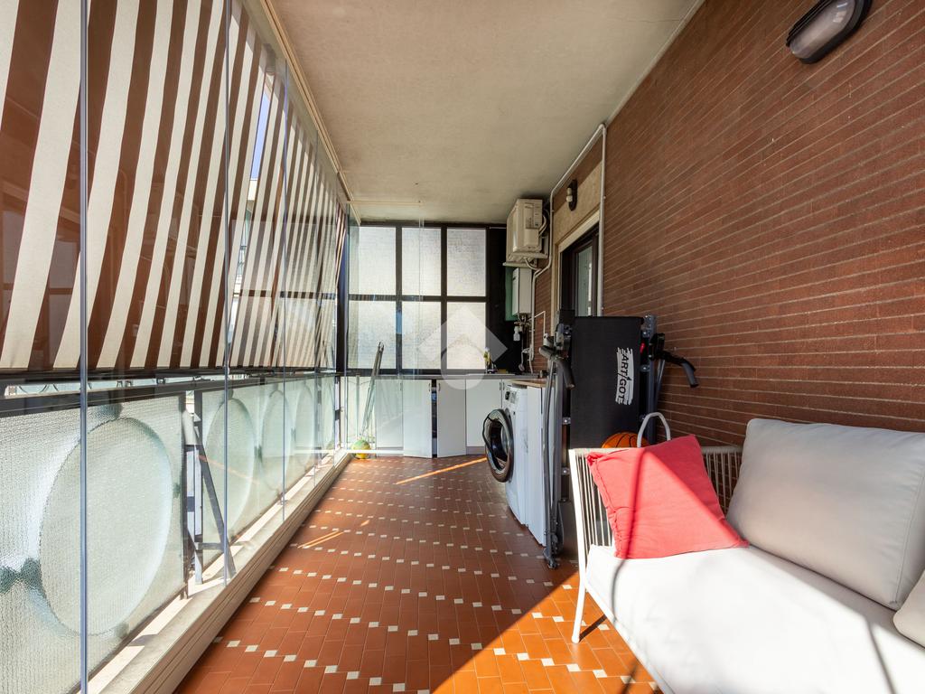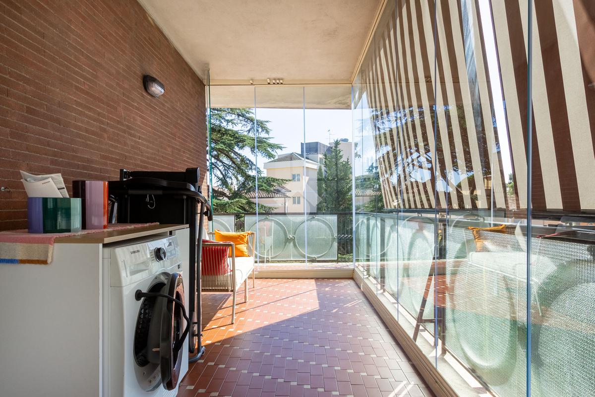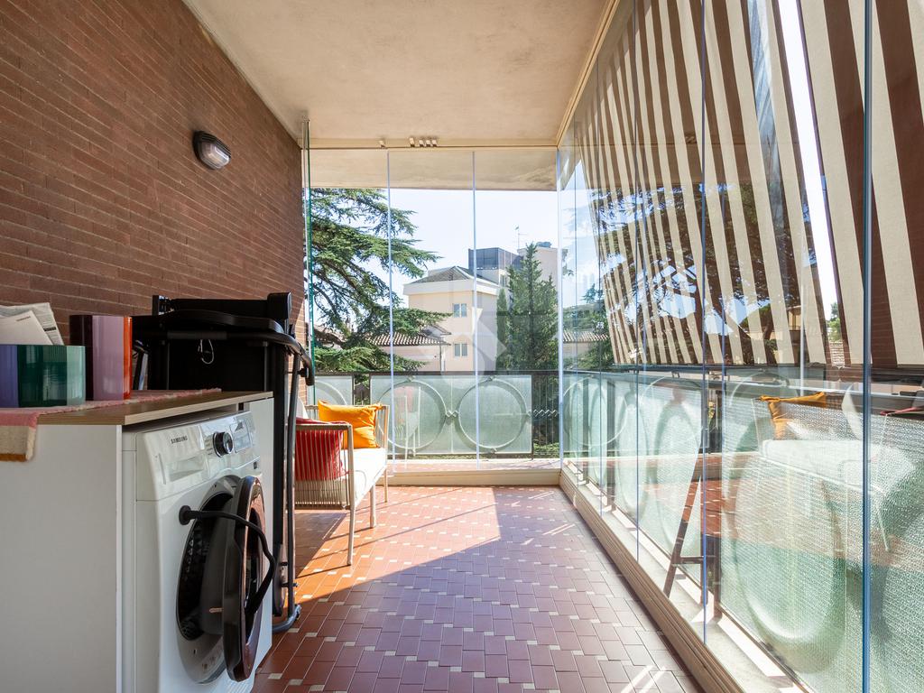 Sul balcone è inoltre presente un comodo 'angolo lavanderia' con lavandino, discreto ma estremamente utile.