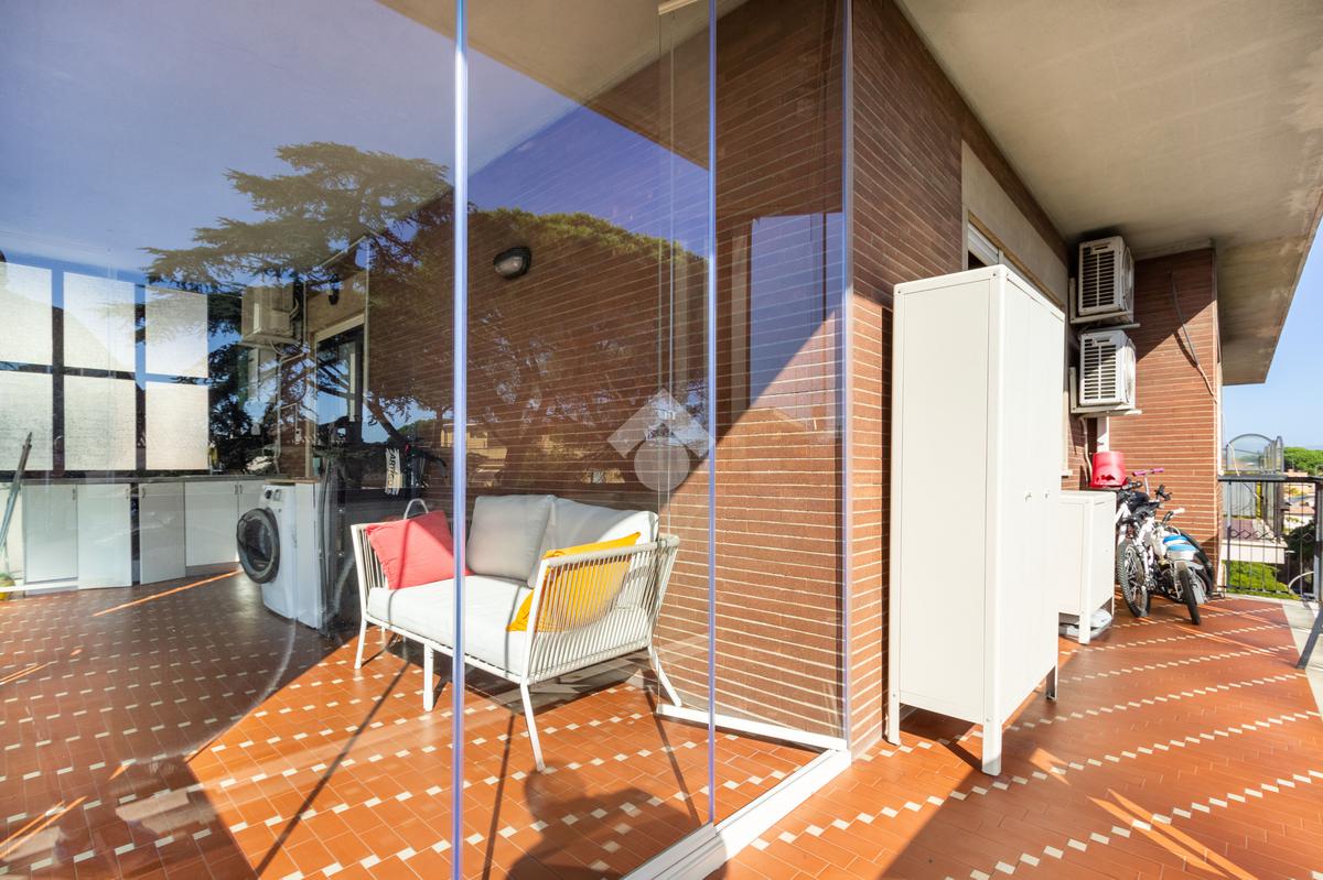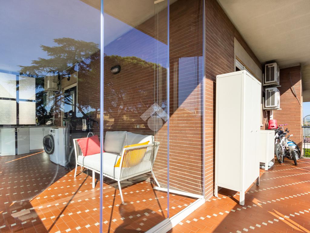 Il balcone abitabile rappresenta il vero valore aggiunto di questa casa: uno spazio esterno vivibile tutto l'anno, arricchito da vetrate panoramiche amovibili che permettono di godere della vista e della luce in ogni stagione.